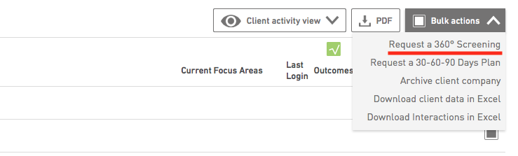 3. Go to the 'Bulk actions' dropdown menu above and select 'Request a 360° Screening'.