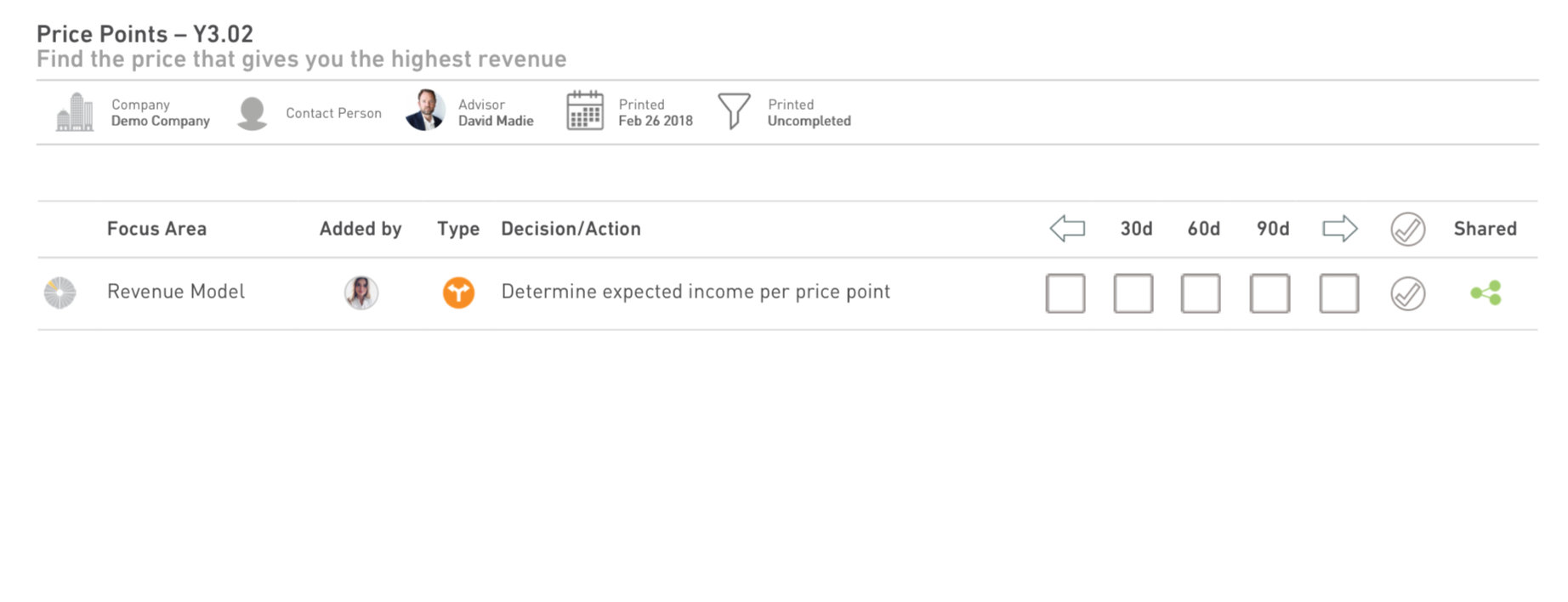 4. Click the download icon to the right to download a Decision Sheet with added decisions and actions.